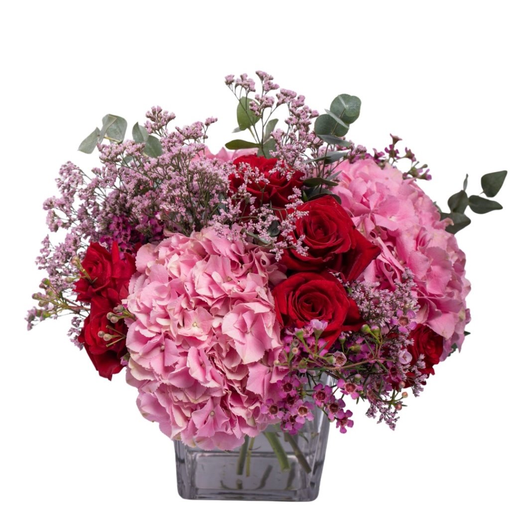 فاز يحتوي على هيدرانج بينك مع روز أحمر مون موف وواكس موف